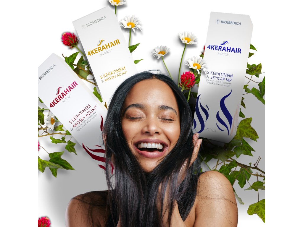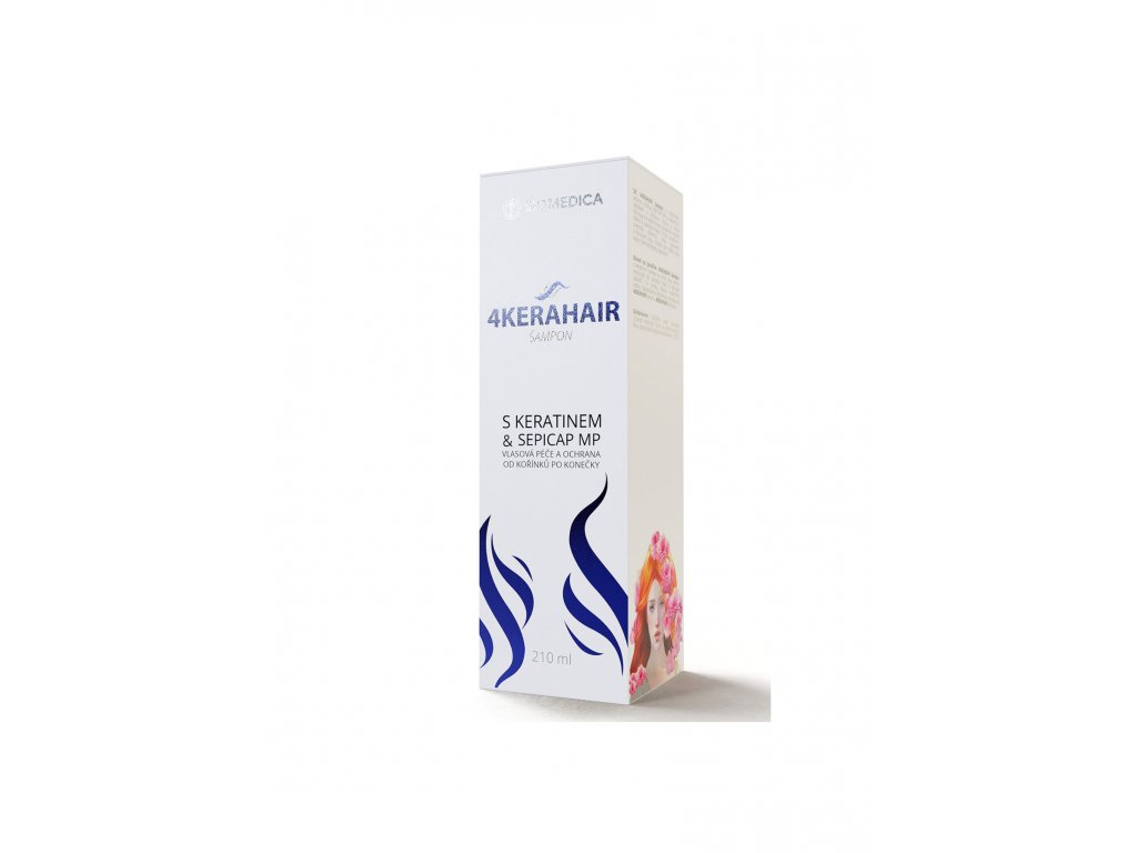 4KERAHAIR Šampon s keratinem a aktivní složkou SEPICAP MP a rostlinnými výtažky z břečťanu, kopřivy a břízy obnovuje sílu Vašich vlasů, působí na vlasové vlákno a pokožku hlavy. Chrání namáhané, chemicky ošetřené, slunci vystavené a fénované vlasy. Vhodné pro všechny typy vlasů. Dermatologicky testováno.
