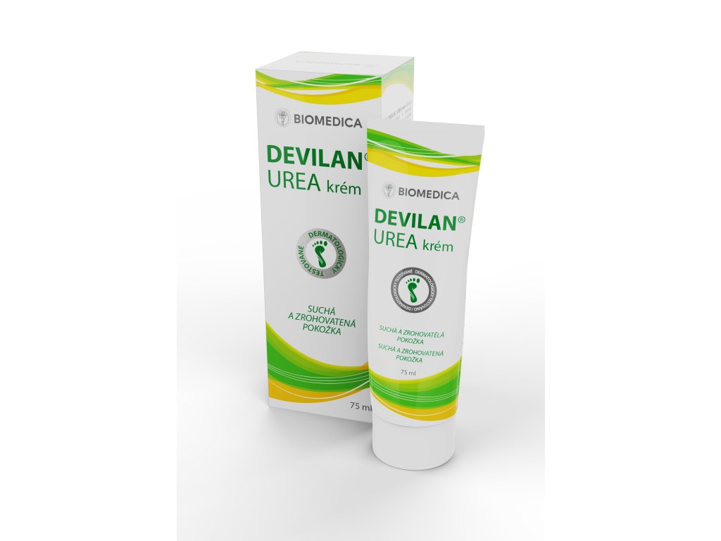 DEVILAN® UREA KRÉM ošetřuje drsnou, namáhanou a ztvrdlou pokožku chodidel, která má sklony k rohovatění a praskání. Lze použít také na lokty, ruce a kolena. Jemná vůně leknínu a limetky. Kosmetický přípravek.
